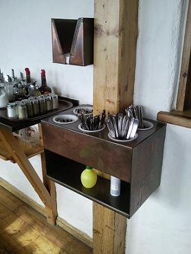 Kívülről fekete és este mutatja legszebb arcát az arra járóknak. Állítólag a tűzoltósági előírásoknak volt a legnehezebb megfelelniük a tervezés során (ismerős…). Spinklereket nem láttunk, csak a helyi menzán…