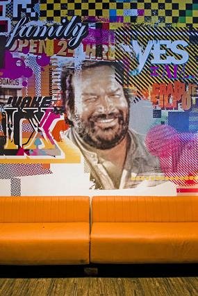 A ruhatártól és a konyhától megszabadultak a nagyobb vendégtér és a hosszabb pult javára. A falakon a teljesen egyedi és saját gyártású tapéták kapták a főszerepet, melyekről elhíresült idézetek és világsztárok szólítanak meg minket.