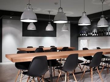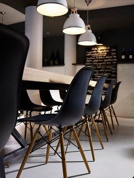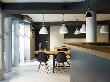 Hatalmas “közös” asztalok, kellemes, megnyugtató színek, és sehol egy hivalkodó felület. Nem akar többnek látszani mint ami és ezért tetszik nagyon.