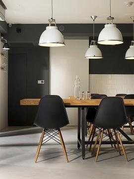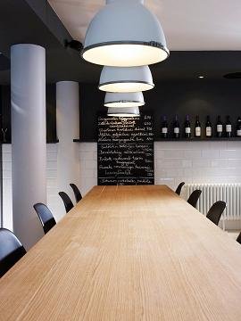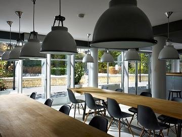 Hatalmas “közös” asztalok, kellemes, megnyugtató színek, és sehol egy hivalkodó felület. Nem akar többnek látszani mint ami és ezért tetszik nagyon.