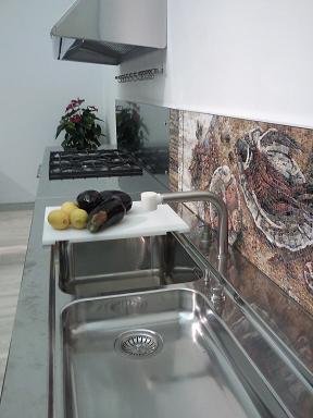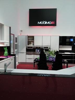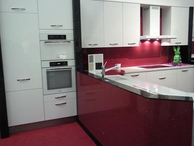 A Modimo csupa Technistone fekete-piros csillámos konyhafala inkább egy night klubra emlékeztetett mintsem egy konyhára. Mindegy, szeretjük a Technistone-t.