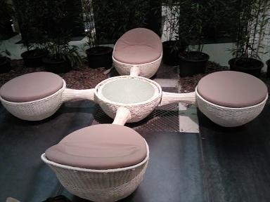 A SUNMOON luxus-öko bútorai közül ez a furi kis kültéri “társalgó” volt izgalmas.
