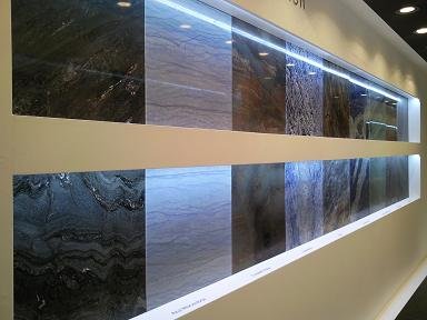 A már állandó résztvevőnek számító Antolini természetes köveit bemutató standon hiába szerettünk volna információt vagy prospektust kapni, nem találtunk senkit.