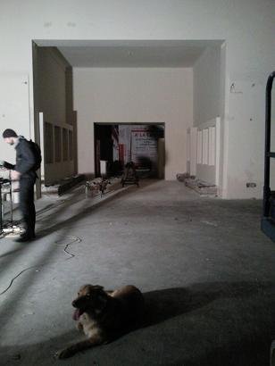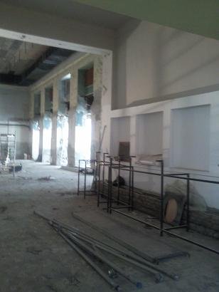 A külső már meglévő terem és az új helyiség közötti fal lebontása után ez a látvány tárult elénk.