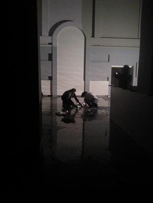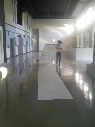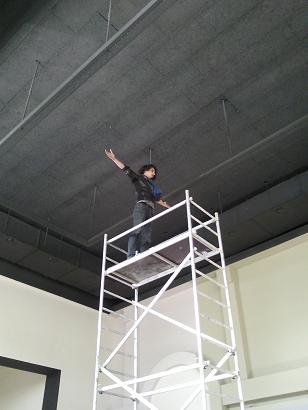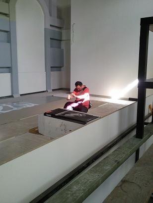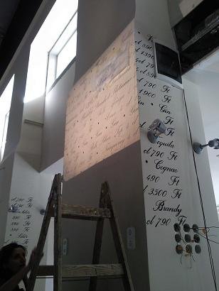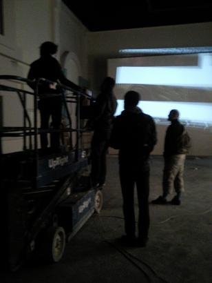 A grafikákat a helyszínen kivetítve próbáltuk a későbbi helyükre. Nagyon hideg volt még akkor!
