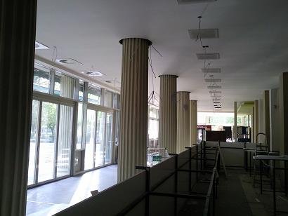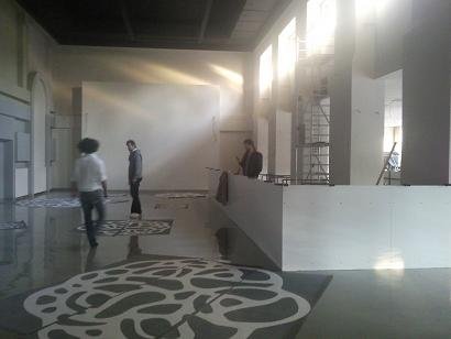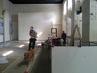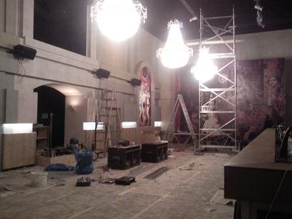 Az utolsó előtti nap már egészen biztató volt a helyzet. A lámpatestek és a grafikák a helyükre kerültek.