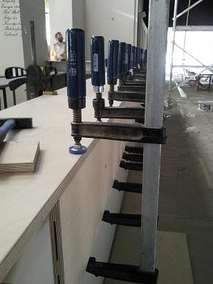 Az asztalosok villámgyorsan összedobták a gigantikus bárpultot.