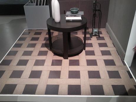 Az egész bemutatóterem egyébként műgyantával volt burkolva. Petra barátnőm bölcsen megjegyezte, hogy nyilván azért, mert elég ciki lenne ha leburkolnának egy ekkora teret egy lappal amit később kivonnának a forgalomból, a tervezők és a vásárlók pedig izgatottan dicsérnék és keresnék amit ott láttak…