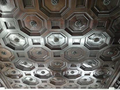 Mindehhez a fejünk felett eredeti állapotba helyreállított mennyezeti freskók.