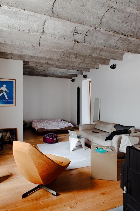 A nappali és a hálószoba egy légtérben kapott helyet.