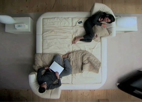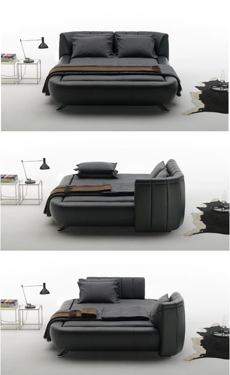 Attól különleges, hogy nem az alvó felülettel játszik a tervező, hanem a háttámlát teszi flexibilissé és így egy minden eddiginél jobban használható (….és nagyobb helyet foglaló, de ez most mindegy) kanapé ágyat kapunk.