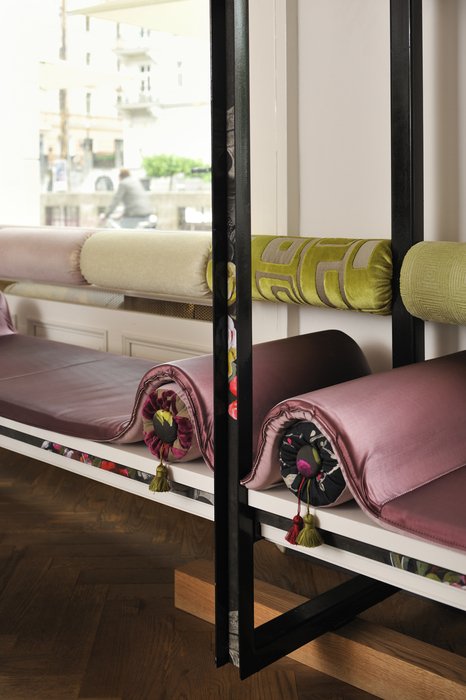 A sok fehéren és a dekorbeton felületen színes ledekkel játszanak. A szögletes egyedi bútorok közé becsempésztek egy-egy klasszikus darabot is.