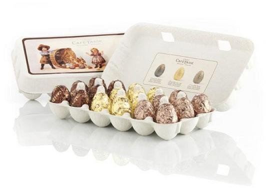 Az üzlet egy U alakú helyiség, két bejárattal. Egyik végén vitrinekben láthatóak a finomságok, beljebb haladva pedig már tornyosulnak a tökéletesen csomagolt csokoládék.