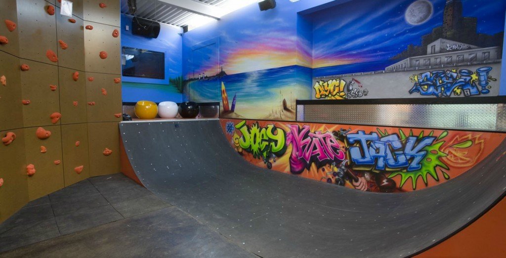 A házban bowling pálya, mászófal, mini gördeszka pálya, szauna, házimozi, teniszpálya, spa és uszoda is található.
