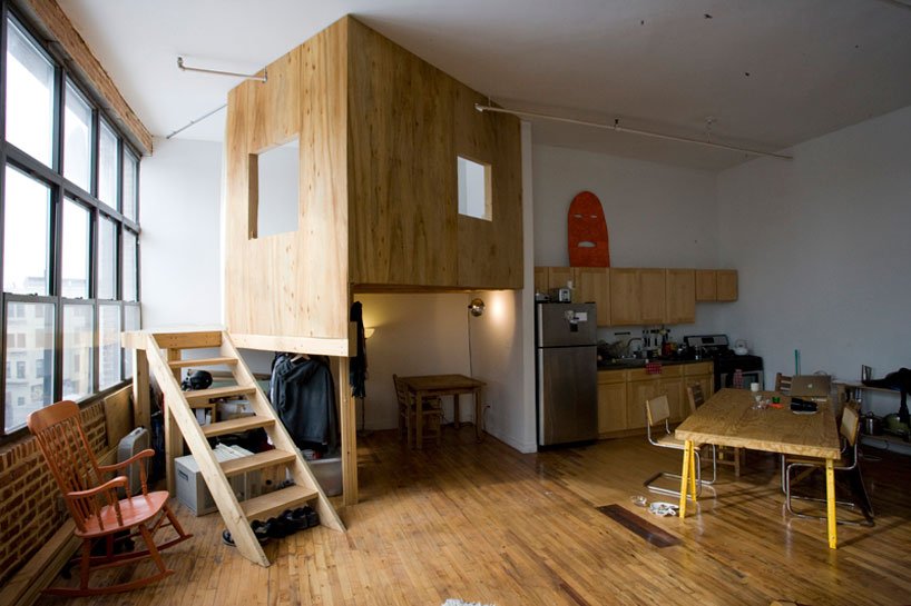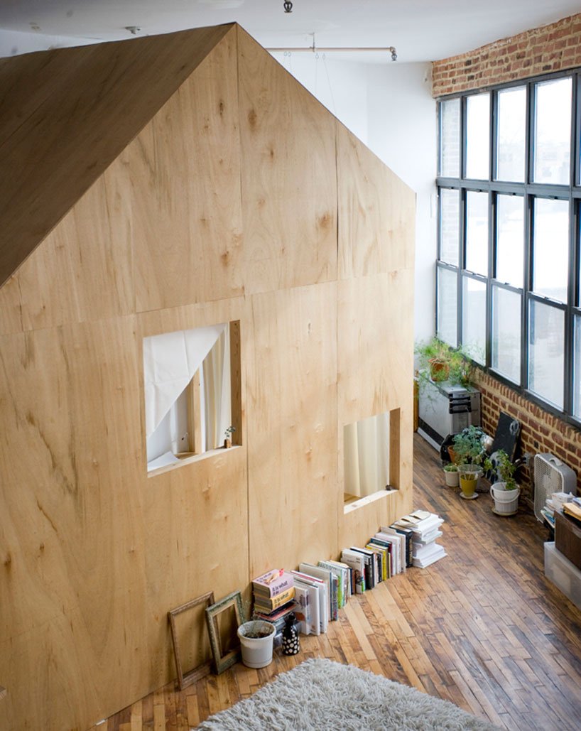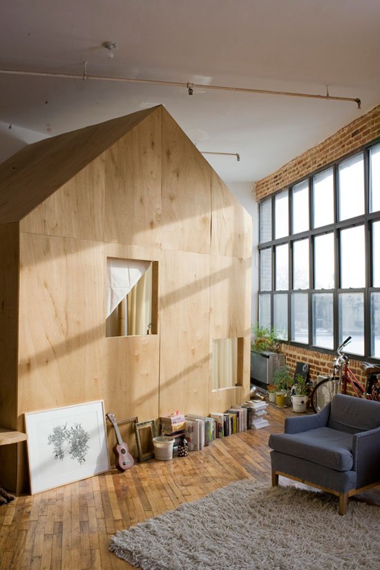 Terry Chiao építész tervei alapján születtek ezek a valójában alvófülkéket rejtő belső “házak” ebben a loftban.